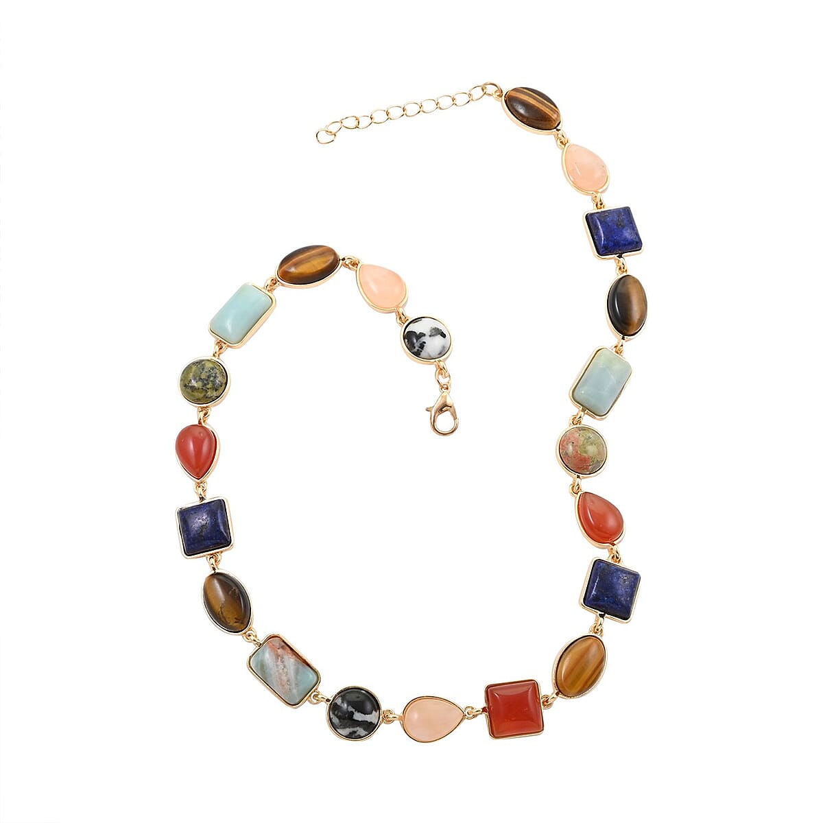 Multi Gemstone Necklace 18-20 Inches in Goldtone 160.00 ctw