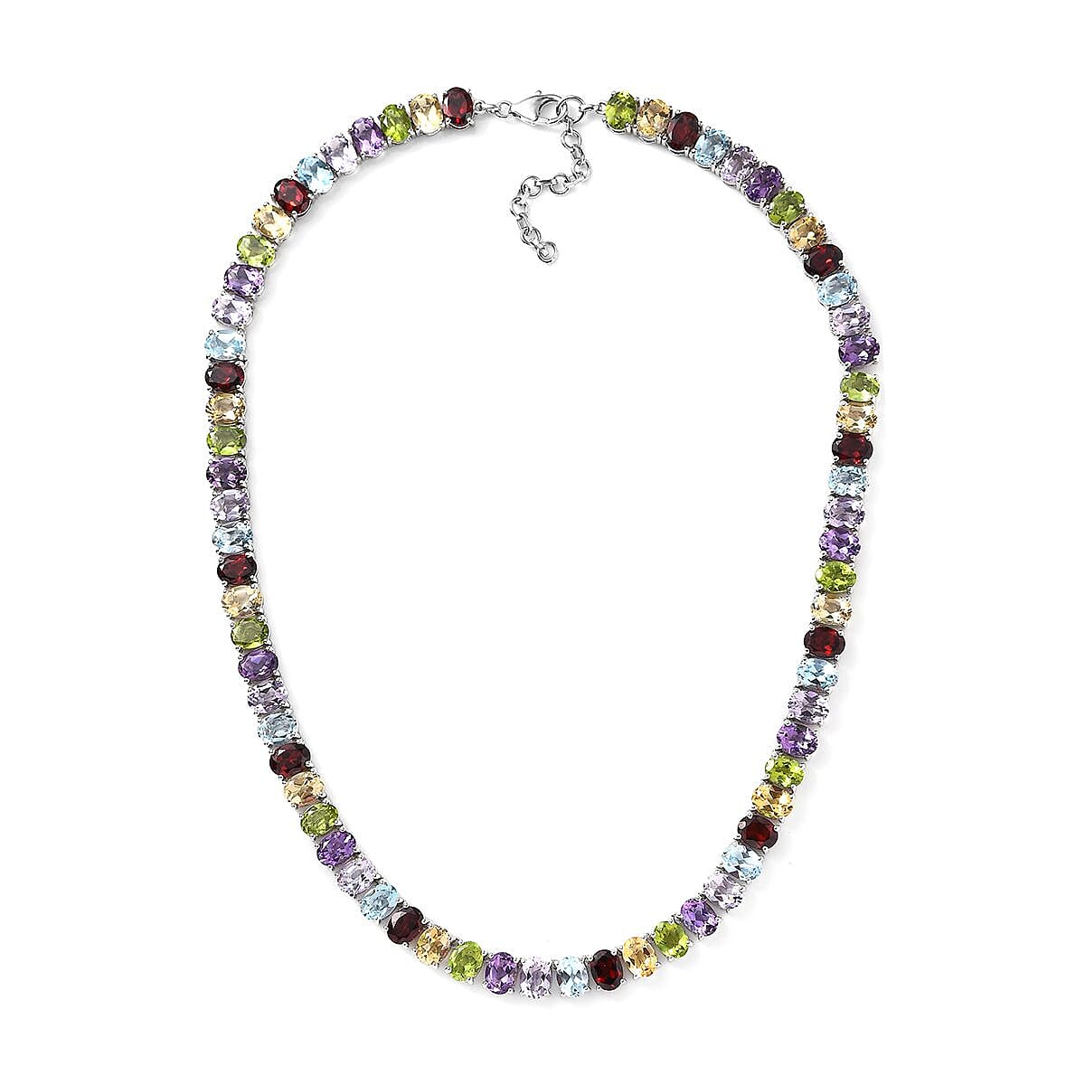 Multi Gemstone Necklace 20-22 Inches in Platinum Over Sterling Silver 86.10 ctw