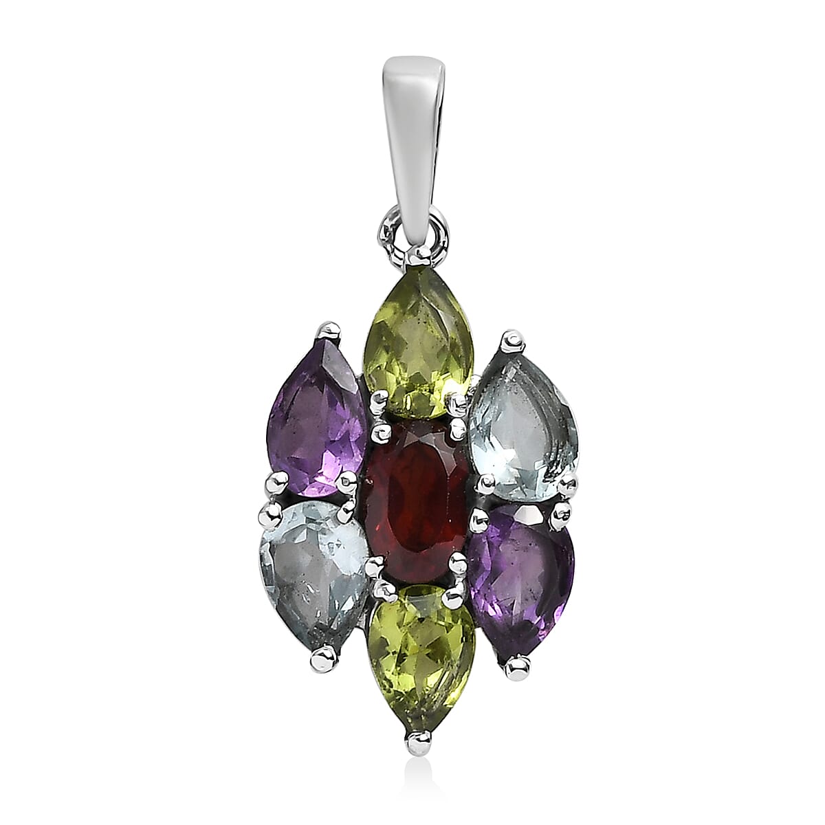 This gemstone pendant is designed as a cluster of vibrant, carefully selected gemstones embodying unity and togetherness. Crafted to highlight each stone's natural brilliance and hue, the pendant is set in durable metal, ensuring both elegance and longevity.