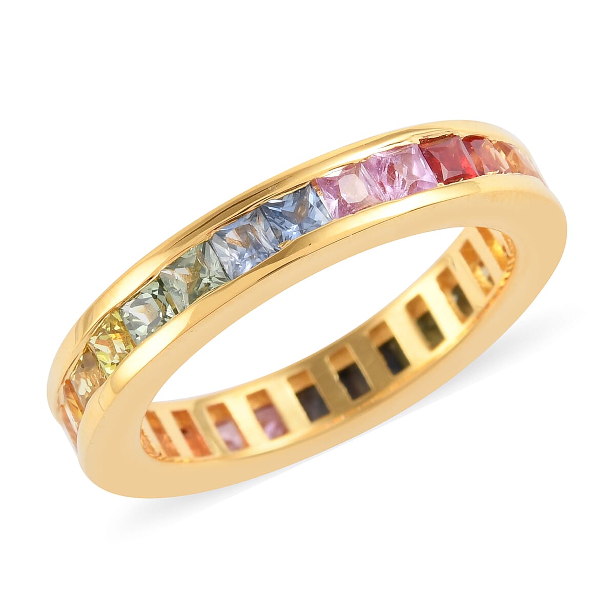 Multi Gemstone Rainbow Stackable Band Ring in 14K Yellow Gold Over Sterling Silver (Size 8.0) 2.34 ctw