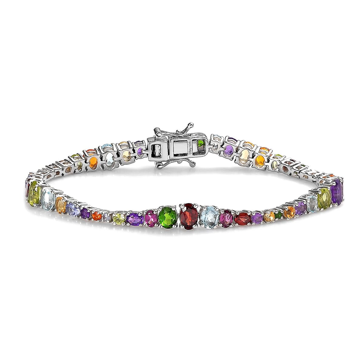 Unveil the epitome of sophistication and style with our exquisite multi-gemstone tennis bracelet. This stunning silver bracelet, crafted from the finest sterling silver, is designed to captivate and charm. Perfect for every occasion, it's an ideal gift that promises to enchant. Make a statement of elegance today with this fancy bracelet, a must-have accessory for women.