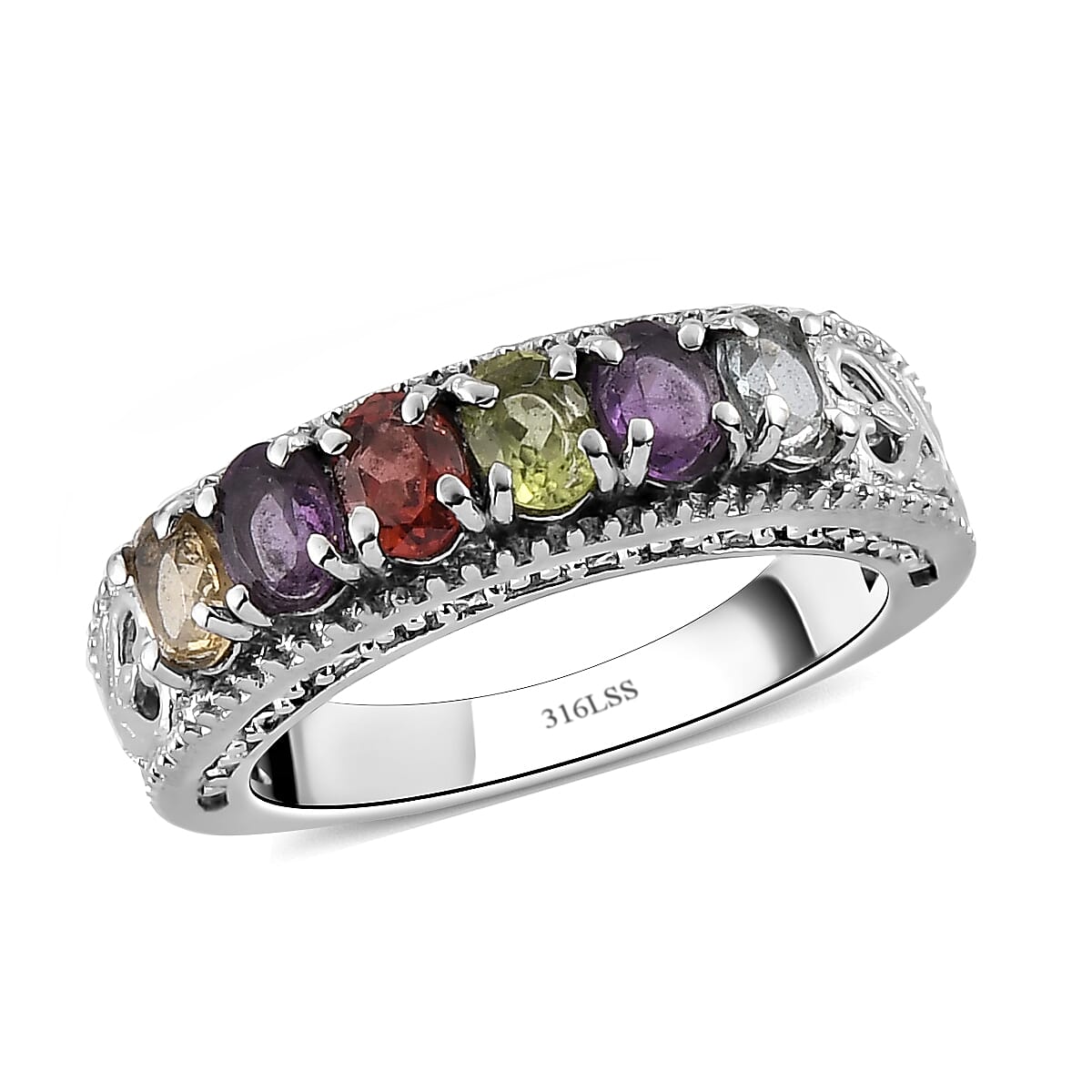 Multi Gemstone Ring in Stainless Steel (Size 10.0) 1.25 ctw | Tarnish-Free, Waterproof, Sweat Proof Jewelry