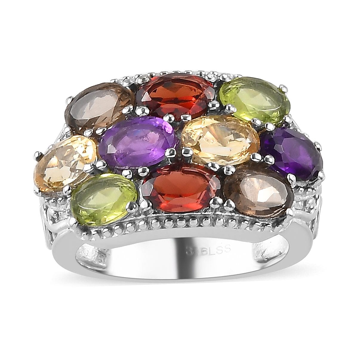 Multi Gemstone Ring in Stainless Steel (Size 8.0) 4.75 ctw