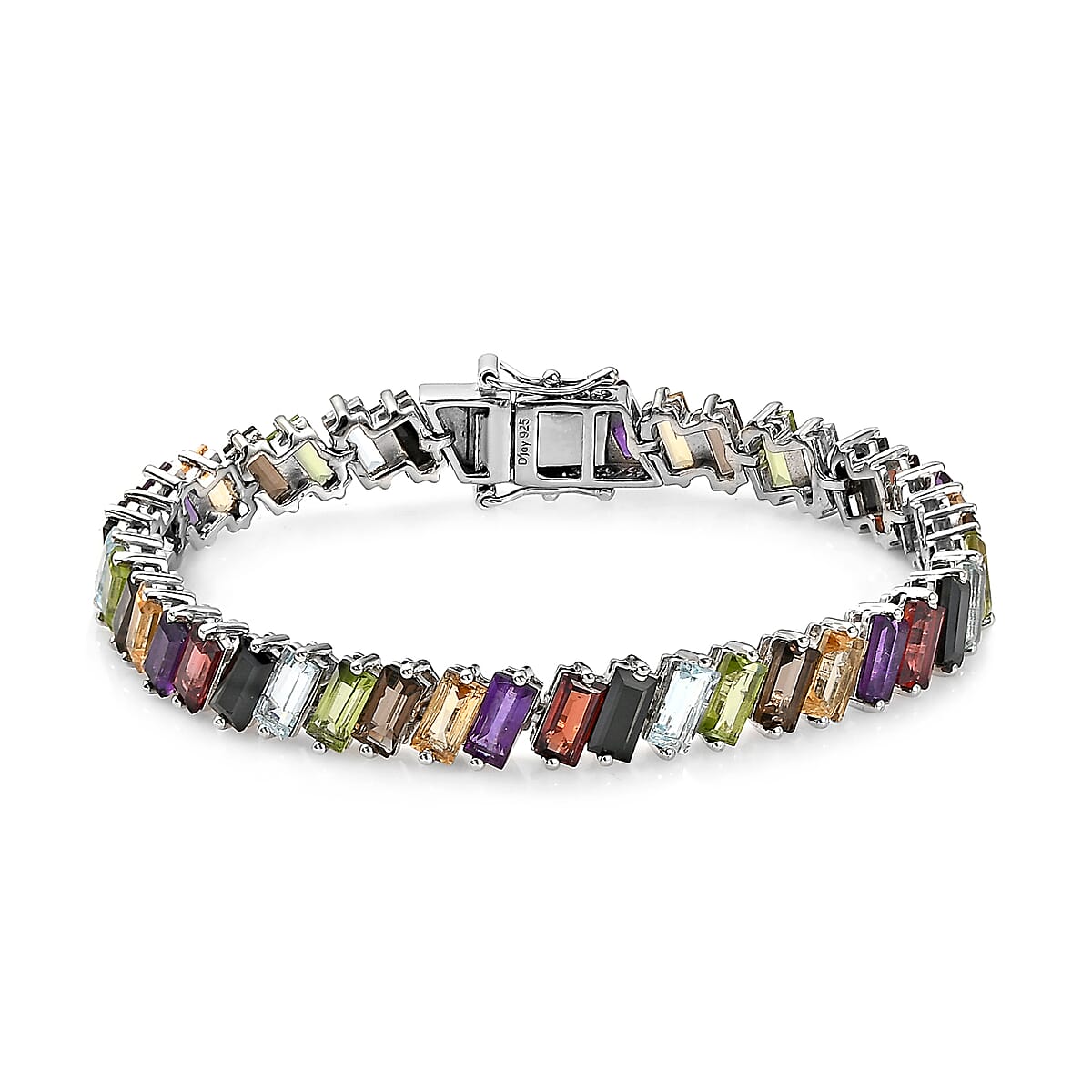 Multi Gemstone Tennis Bracelet in Platinum Over Sterling Silver (8.00 In) 13.65 Grams 23.60 ctw
