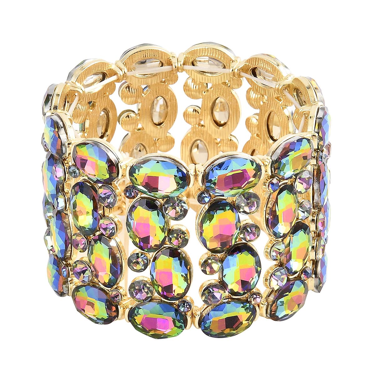 Multi Glass and Multi Color Austrian Crystal Bracelet in Goldtone (6.50-7.0In)