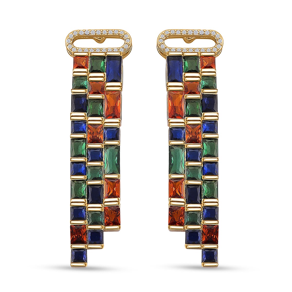 Multi Glass and Simulated Diamond Earrings in Goldtone