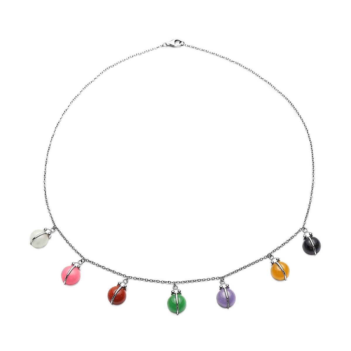 Multi Jade (D) Ladybug Charm Necklace 18 Inches in Rhodium Over Sterling Silver 31.50 ctw