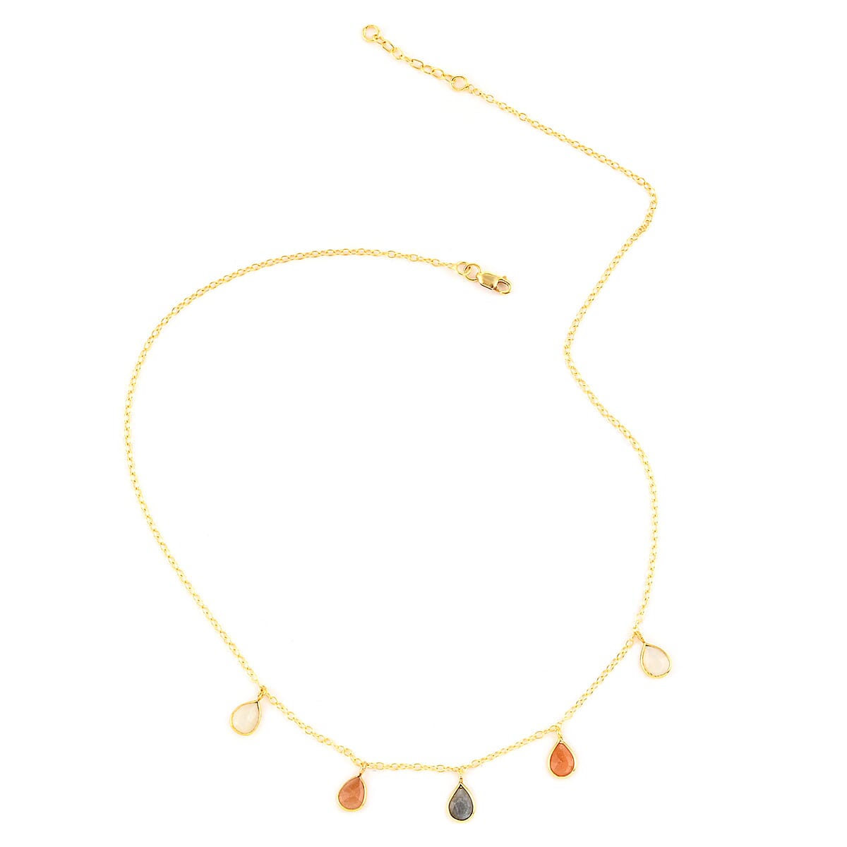 Multi Moonstone Drop Necklace 17 Inches in 14K Yellow Gold Over Sterling Silver 1.85 ctw