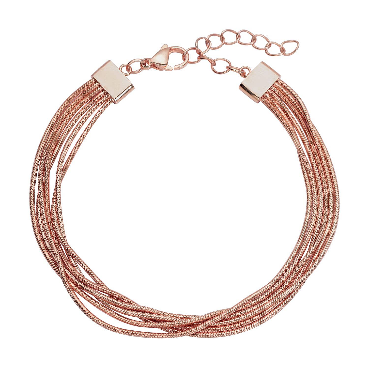 Multi Row Snake Chain Bracelet in ION Plated Rose Gold Stainless Steel (7.50-9.00In)