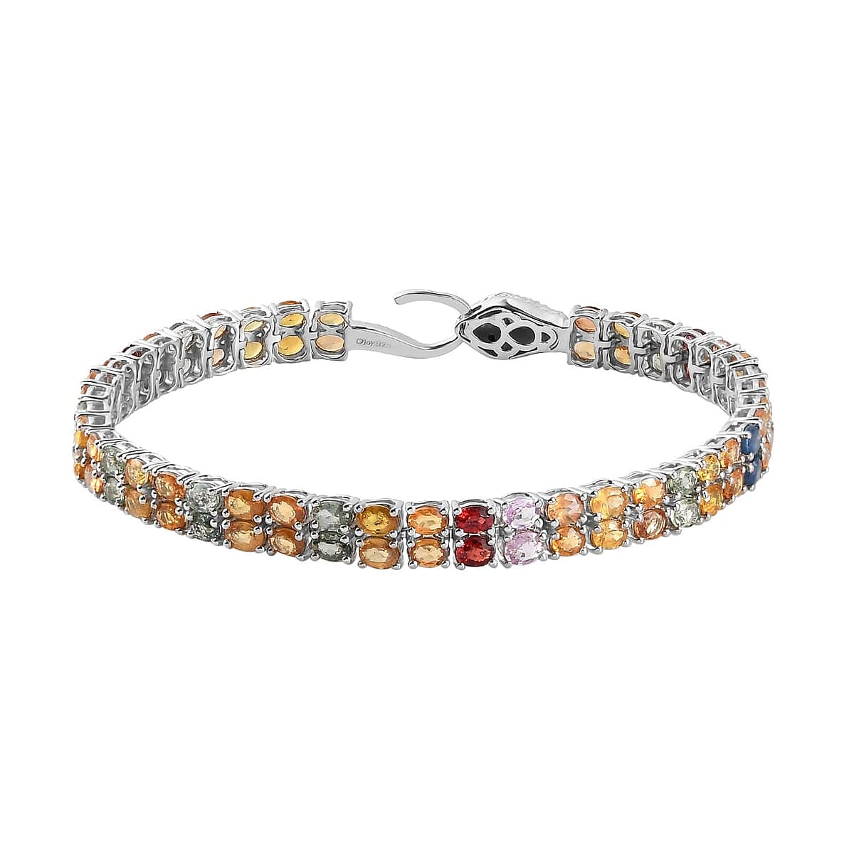 Multi Sapphire and Thai Black Spinel Double-Row Tennis Bracelet in Platinum Over Sterling Silver (8.00 In) 17.90 ctw