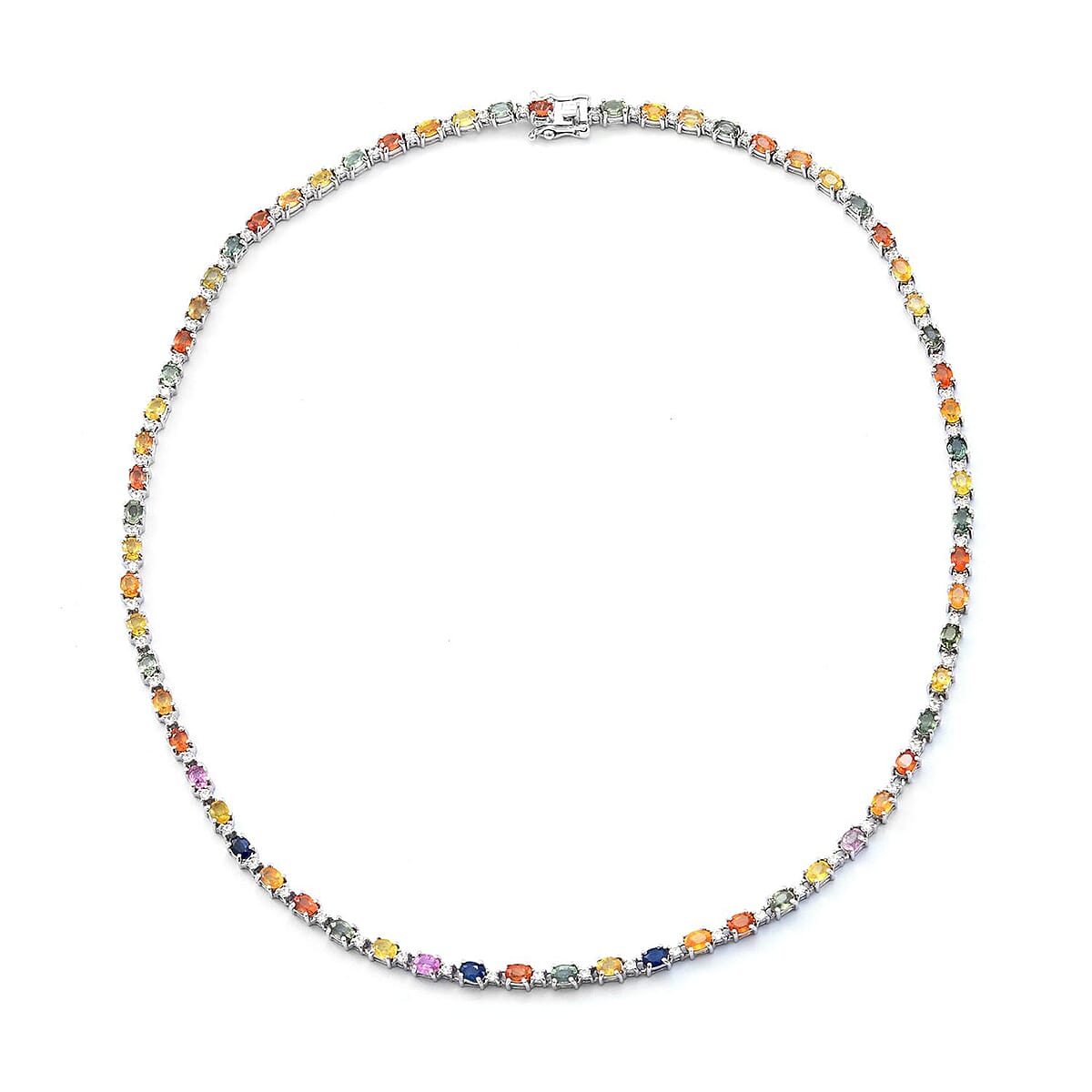 Multi Sapphire and White Zircon Necklace 18 Inches in Platinum Over Sterling Silver 19.40 ctw