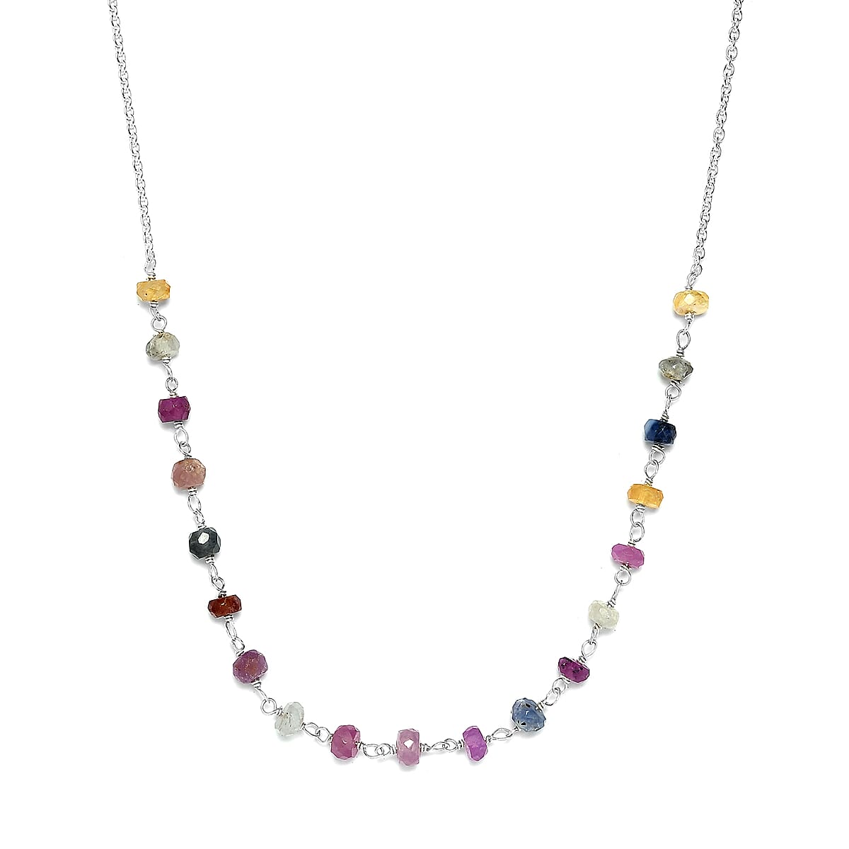 Multi Sapphire Beaded Necklace 18 Inches in Sterling Silver 5.10 ctw