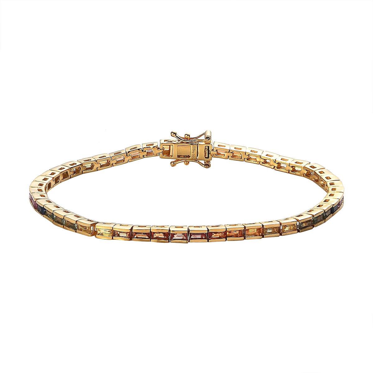 Multi Sapphire Tennis Bracelet in Vermeil Yellow Gold Over Sterling Silver (7.25 In) 6.40 ctw (Del. in 7-10 Days)