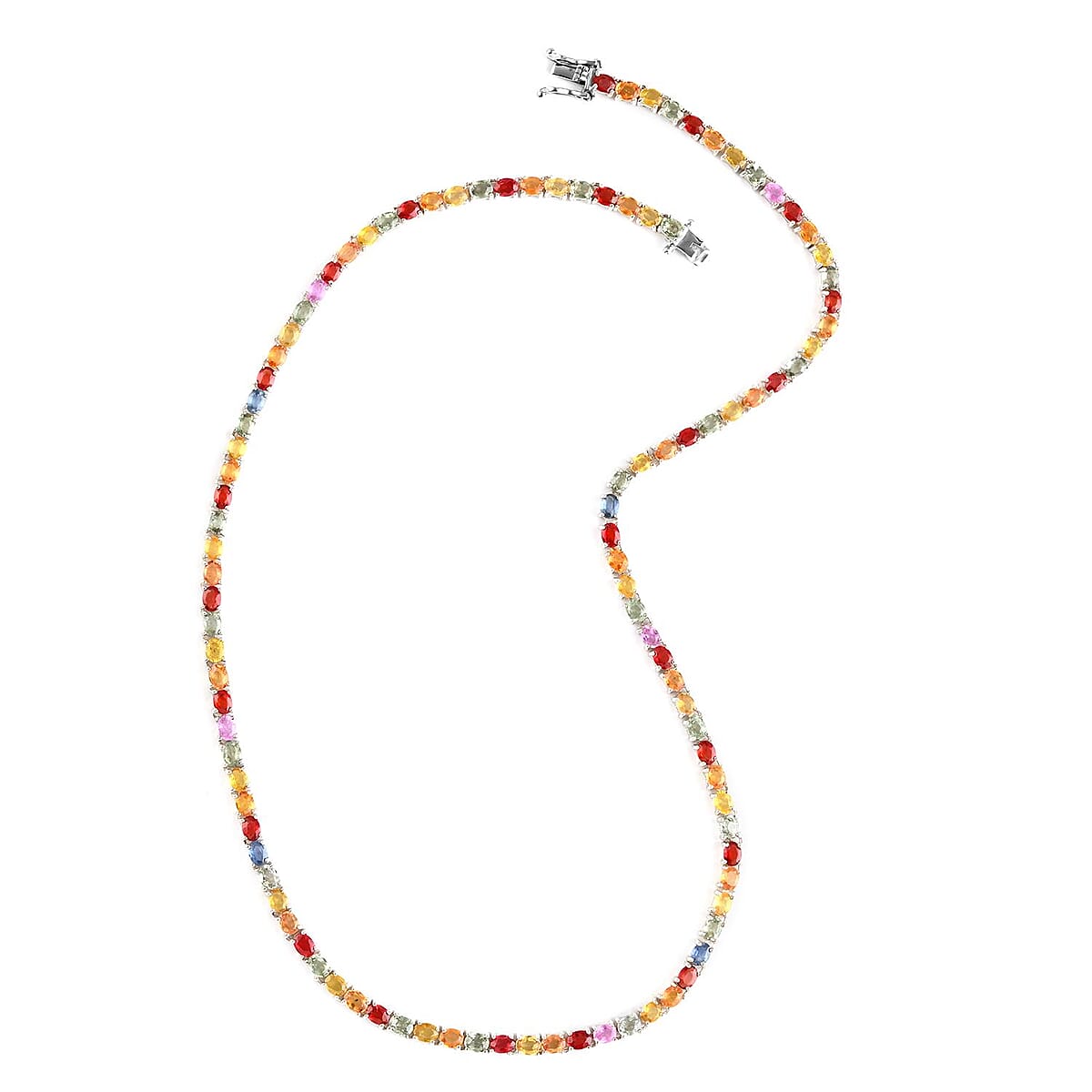 Displaying exemplary gradual setting of multi-colored gems, this multi-sapphire tennis necklace is embellished with sparkling multiple hues sapphire accents and deserves to be in your collection. This tennis necklace has a continuous and complete strand of multi sapphires for an elegant and classic look that encircles the full neckline. This necklace in platinum-plated sterling silver looks great with any formal or casual ensemble. This 18inches princess-length necklace is truly a unique staple everyone would adore.