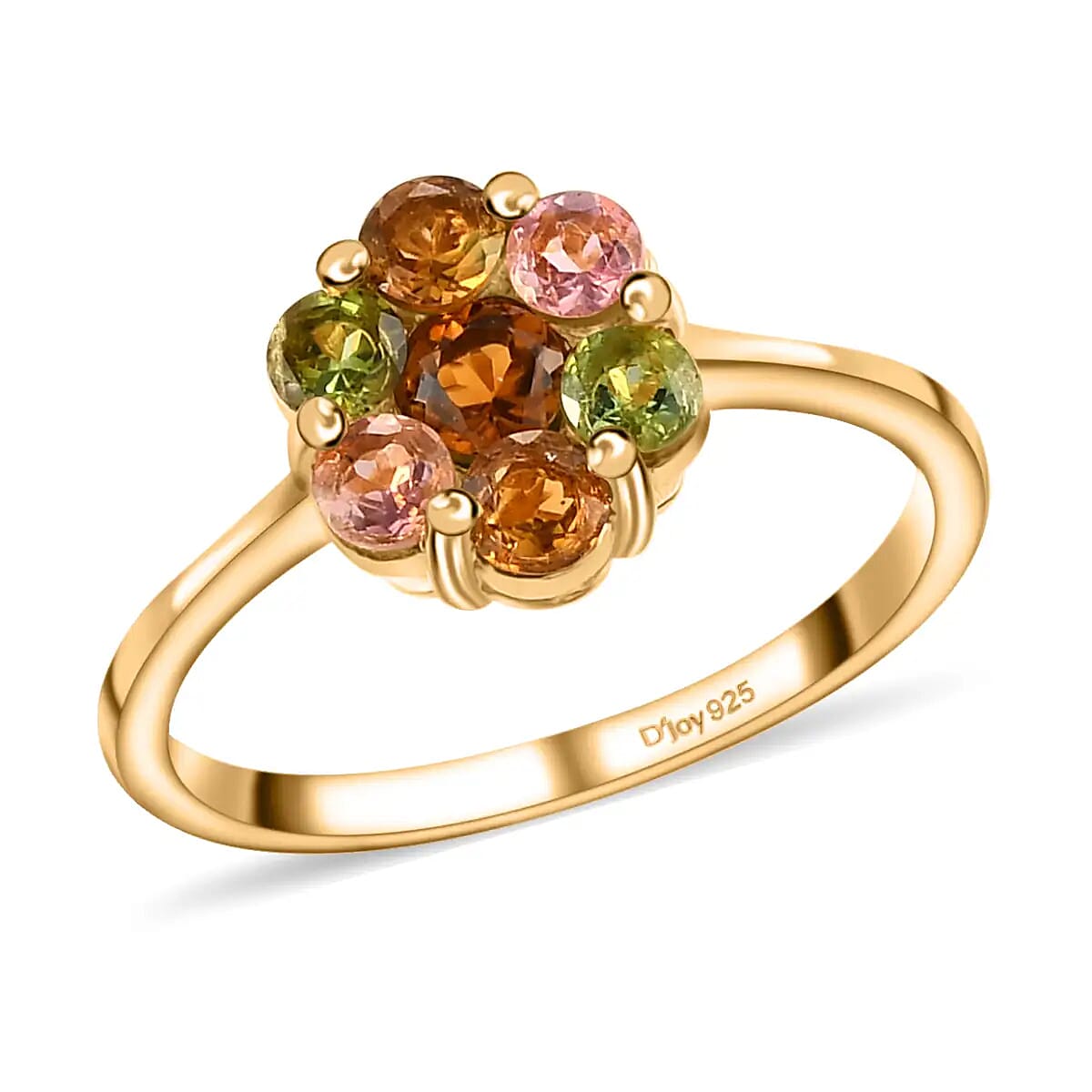 Multi-Tourmaline 1.35 ctw Ring, Multi Colored Ring, Tourmaline Floral Ring, Vermeil Yellow Gold Over Sterling Silver Ring (Size 5.00)