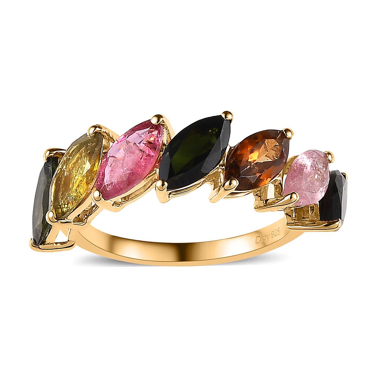 Multi-Tourmaline 7 Stone Band Ring in Vermeil Yellow Gold Over Sterling Silver (Size 8.0) 3.25 ctw