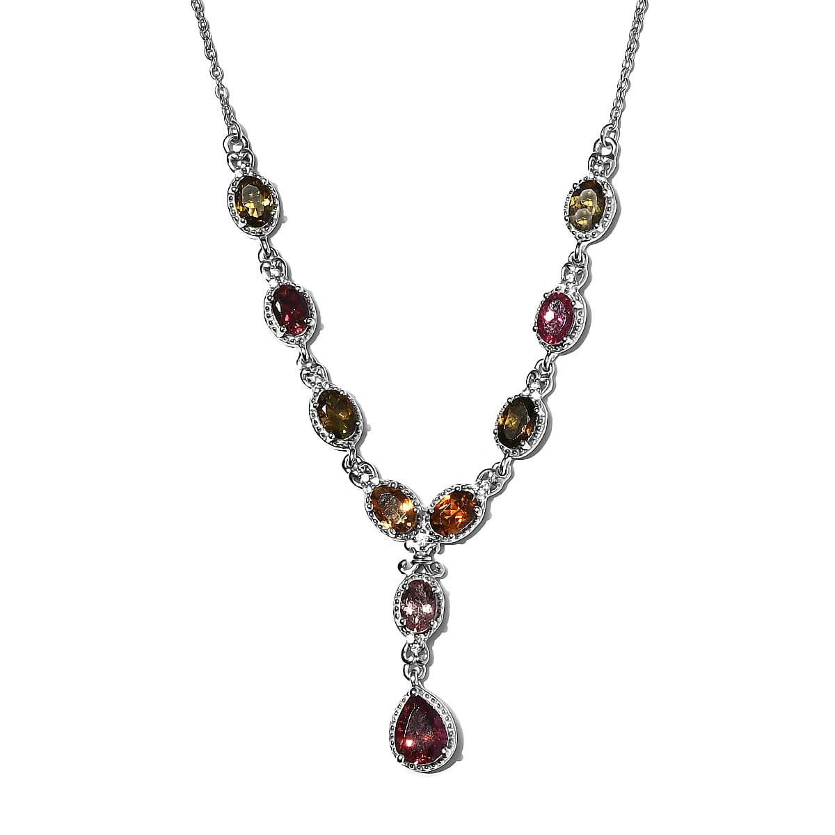 Multi-Tourmaline and Natural White Zircon Necklace 18 Inches in Platinum Over Sterling Silver 5.35 ctw