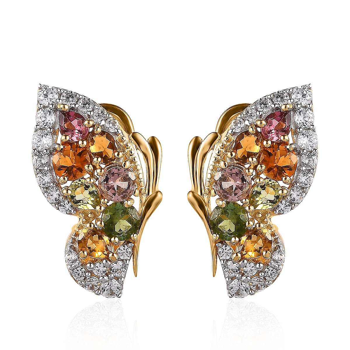 Multi-Tourmaline and White Zircon Butterfly Earrings in Vermeil Yellow Gold Over Sterling Silver 4.10 ctw