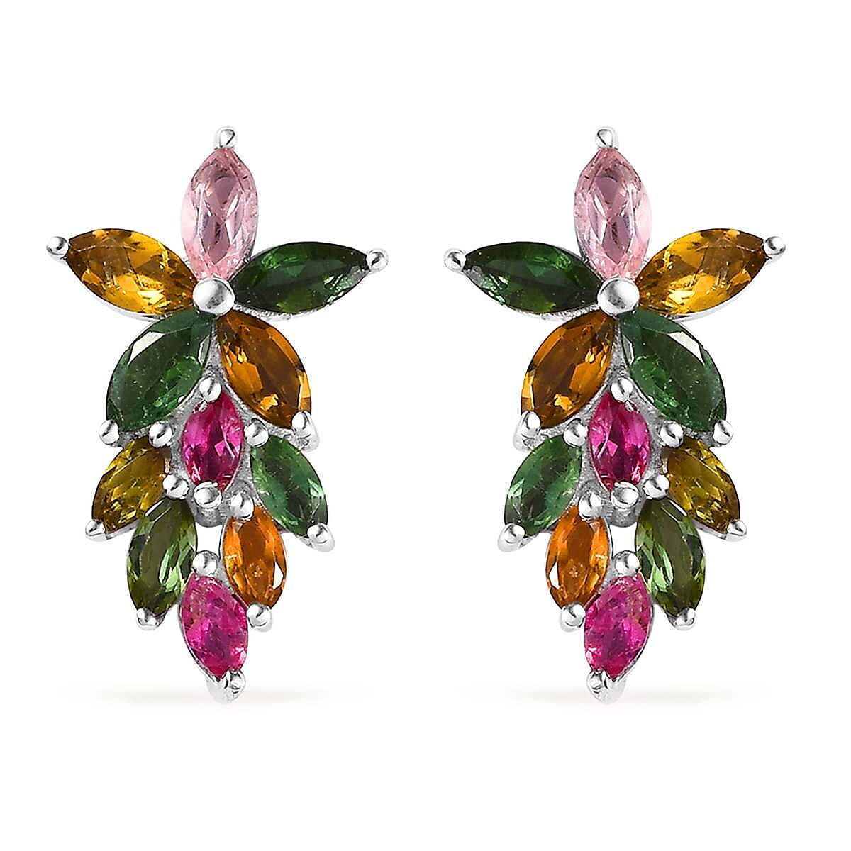 Multi-Tourmaline Dangle Earrings in Platinum Over Sterling Silver 2.40 ctw
