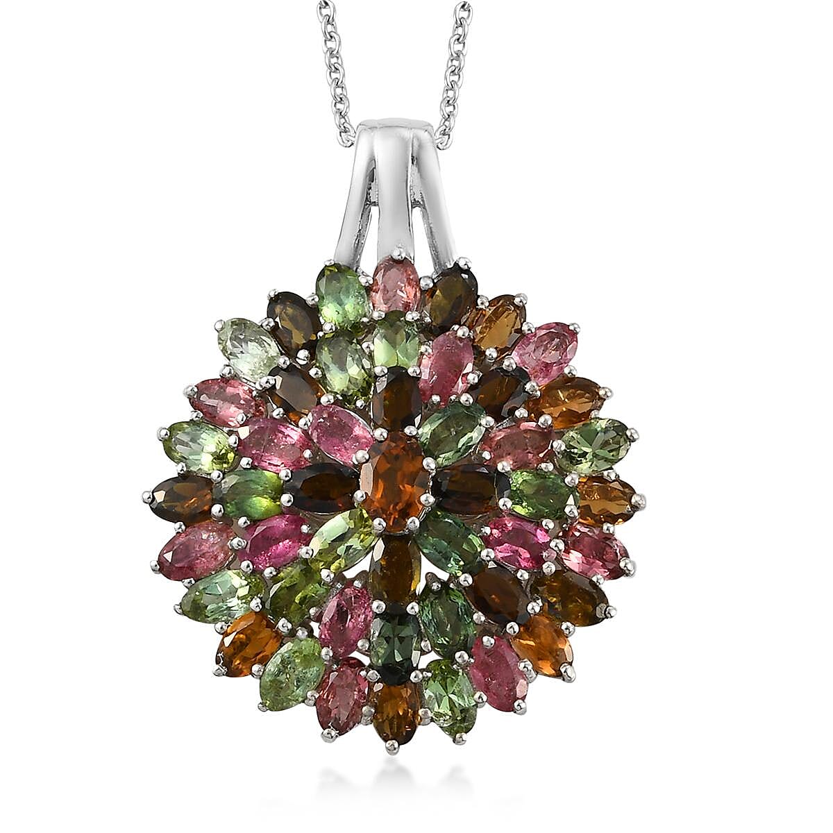 Multi-Tourmaline Floral Pendant Necklace 20 Inches in Platinum Over Sterling Silver 10.15 Grams 12.00 ctw
