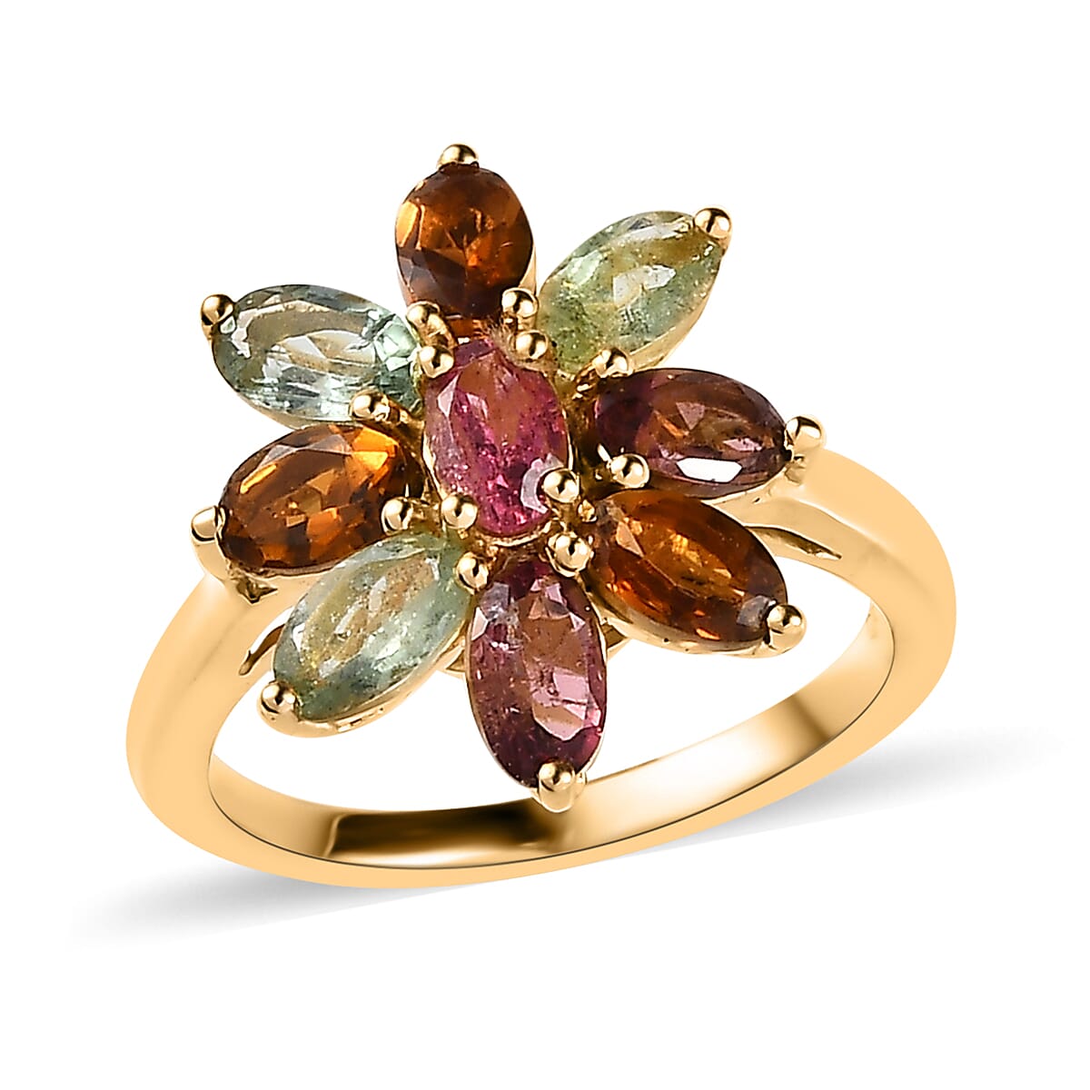 Multi-Tourmaline Floral Ring in Vermeil YG Over Sterling Silver (Size 10.0) 2.10 ctw