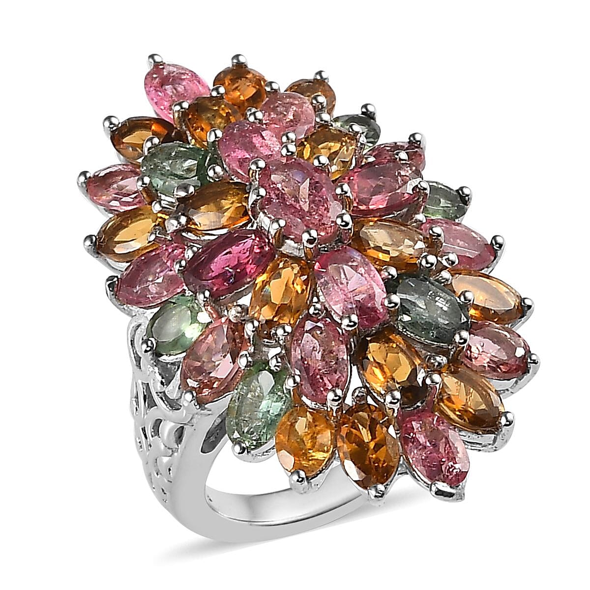 Multi-Tourmaline Floral Spray Ring in Platinum Over Sterling Silver (Size 6.0) 7.25 ctw