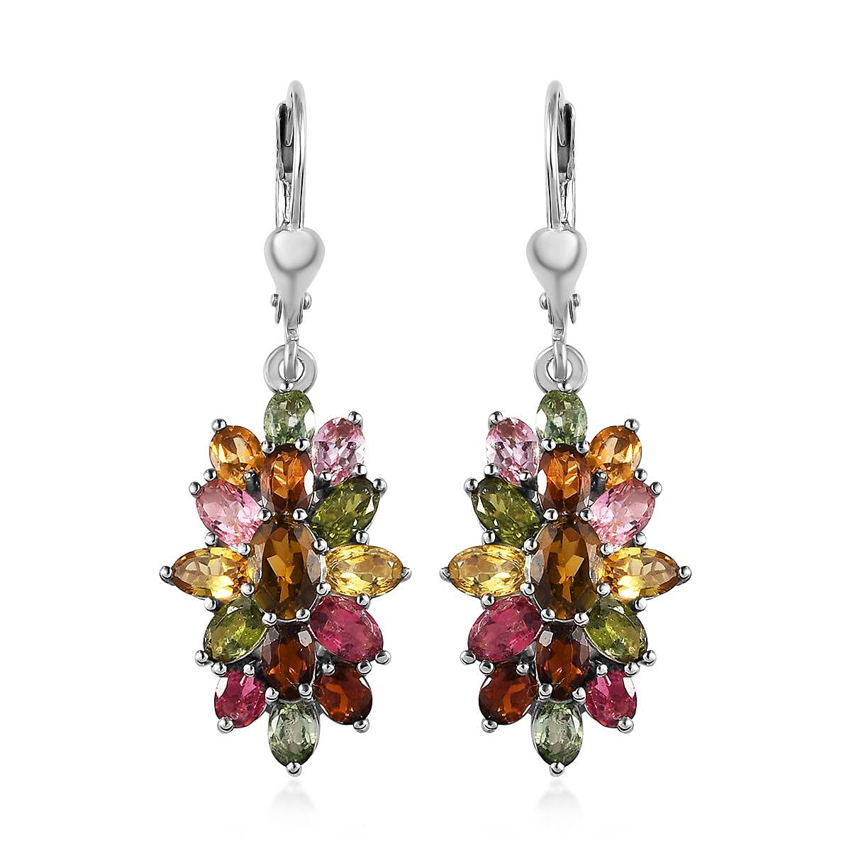Multi-Tourmaline Lever Back Earrings in Platinum Over Sterling Silver 6.40 ctw