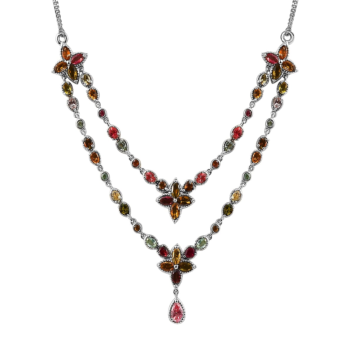 Multi-Tourmaline Necklace 18 Inches in Platinum Over Sterling Silver 19 Grams 9.00 ctw
