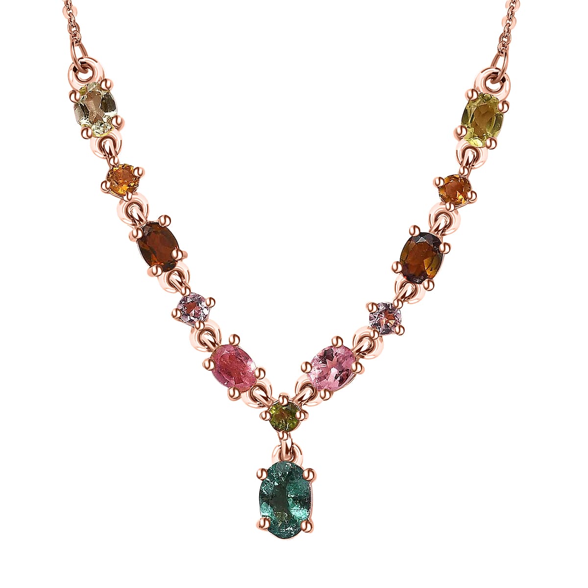 Multi-Tourmaline Necklace 18 Inches in Vermeil Rose Gold Over Sterling Silver, Tourmaline Jewelry, Gift For Her 1.90 ctw