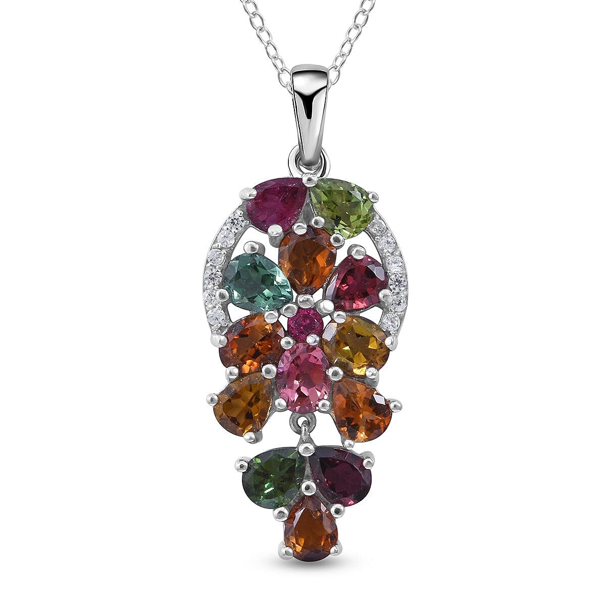 Inspired by the cluster theme, this elegantly exuberant multi-tourmaline pendant necklace punctuates your perfect apparel. Decked with brilliantly pear, oval and round-shaped multi-tourmaline multi-colored accents in an elongated cluster, this pendant is set strategically in a bouquet-themed frame for an ethereal look. This pendant's beauty already piques every soul's interest. A cluster pendant can contain a large center stone or a group of stones of equal size. Punctuate your ensembles with this platinum-plated sterling silver crafted statement-maker princess-length pendant necklace. Tourmaline's colors have many different causes. It's generally agreed that traces of iron, and possibly titanium, induce green and blue colors.