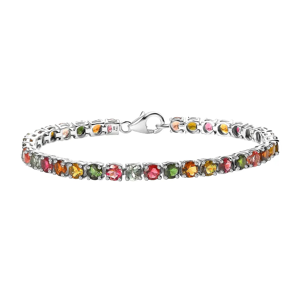 Multi-Tourmaline Tennis Bracelet, Platinum Over Sterling Silver Bracelet, Tourmaline Jewelry For Her (8.00 In) 10.40 ctw