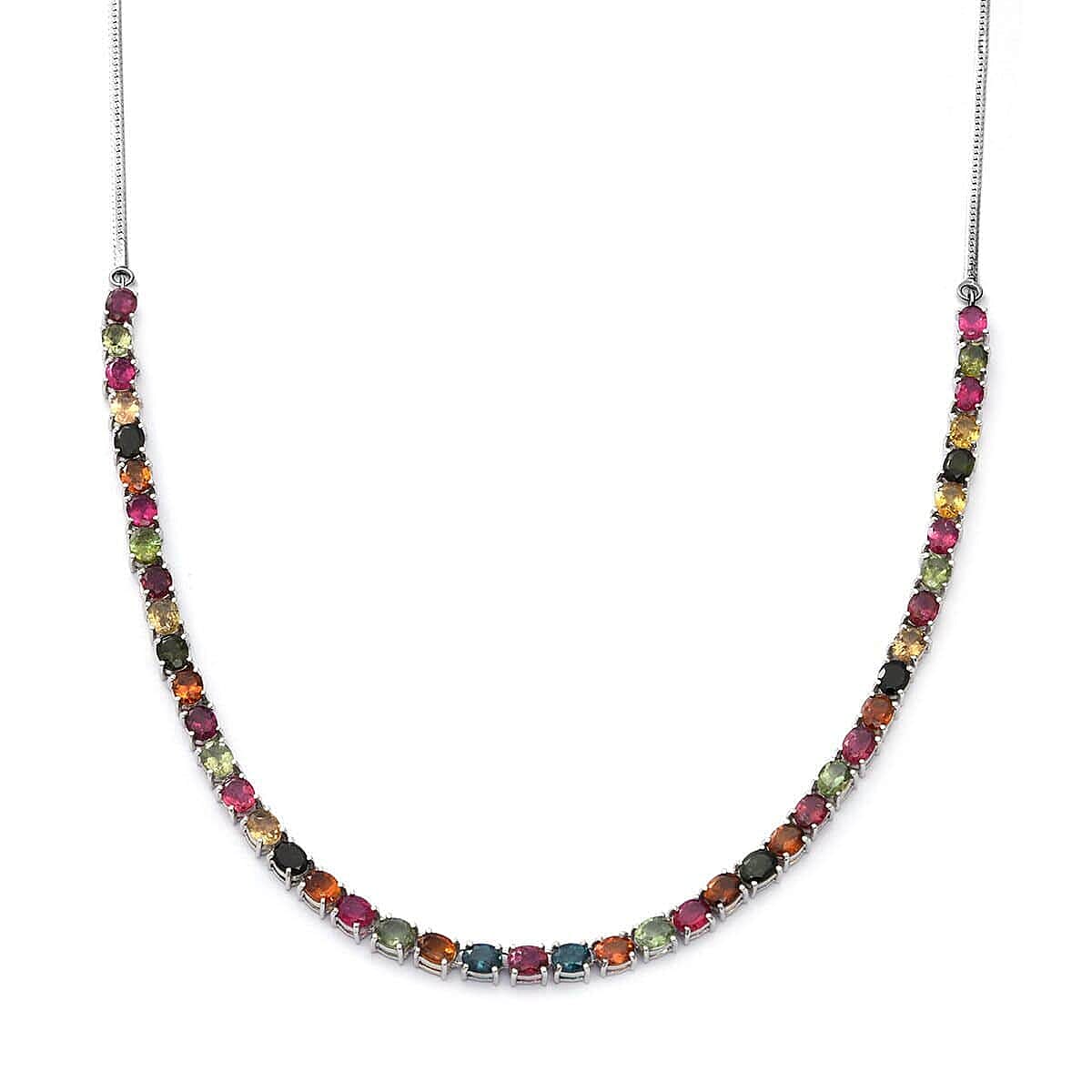 Multi-Tourmaline Tennis Necklace 24 Inches in Platinum Over Sterling Silver 15.60 ctw