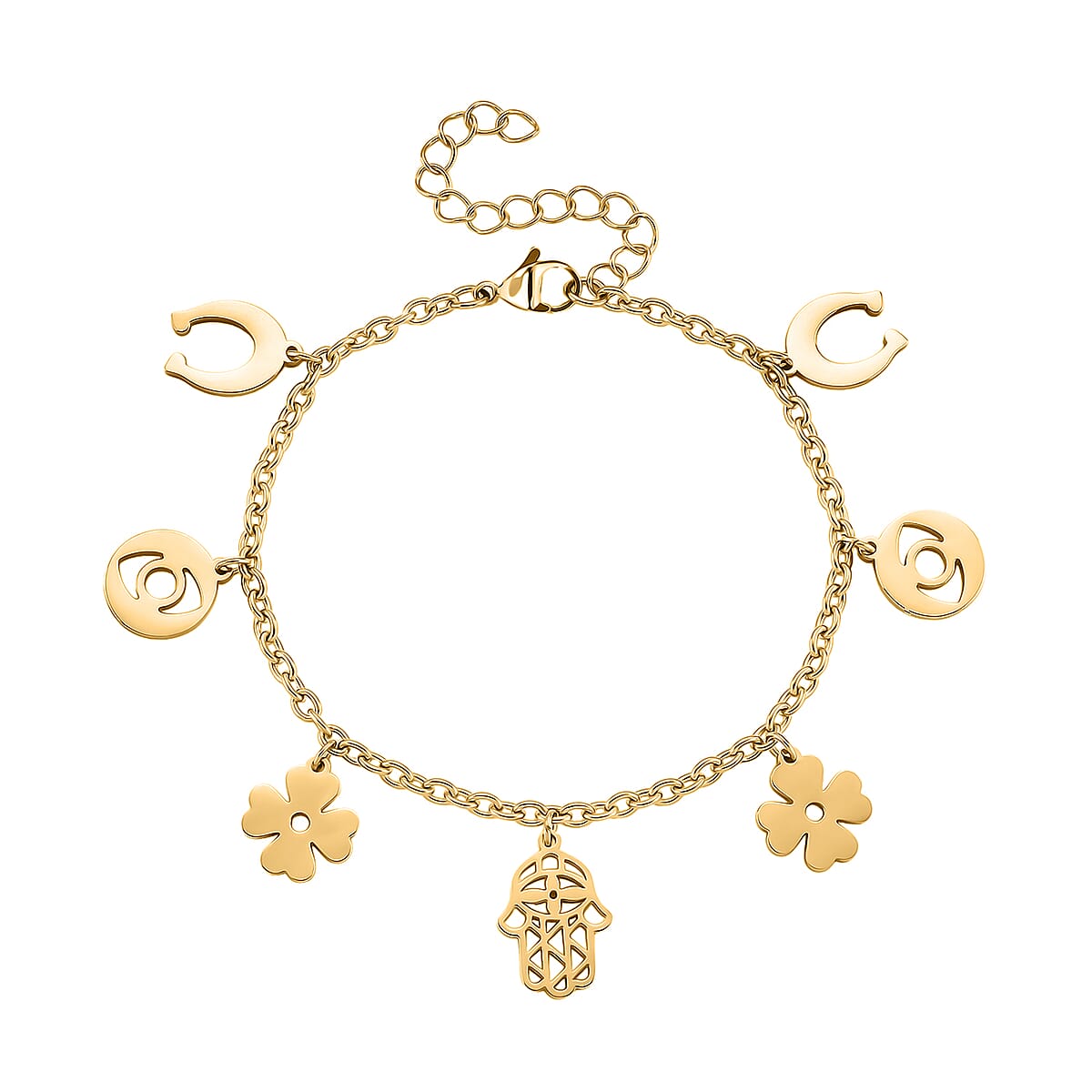 Multiple Symbolic Charms Bracelet in ION Plated YG Stainless Steel (7.50-9.50In)