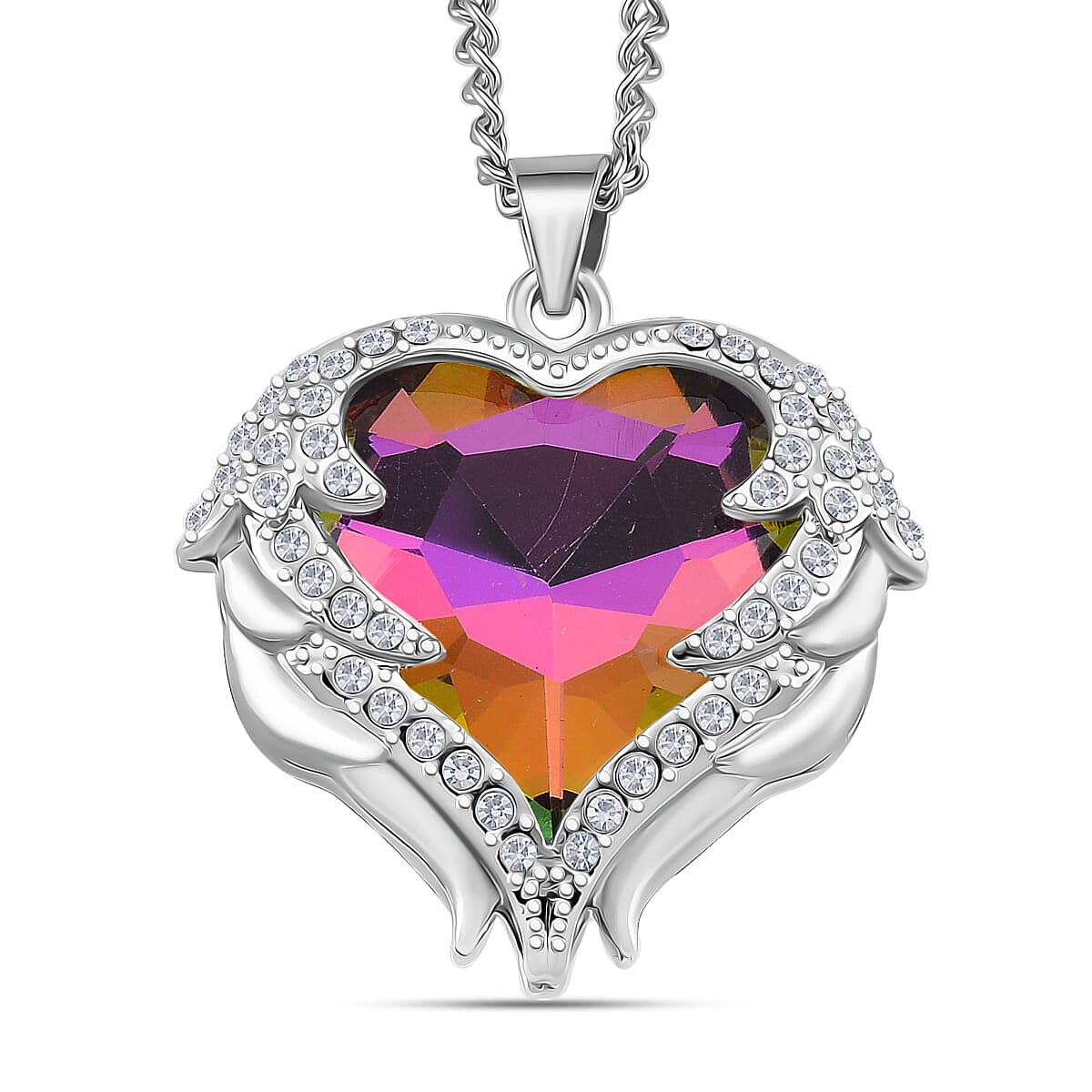 Mystic Color Glass and Austrian Crystal Heart of Ocean Pendant Necklace in Silvertone 24-26 Inches