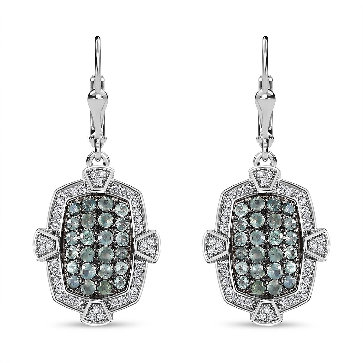 Narsipatnam Alexandrite and White Zircon Art and Deco Lever Back Earrings in Rhodium Over Sterling Silver 2.15 ctw