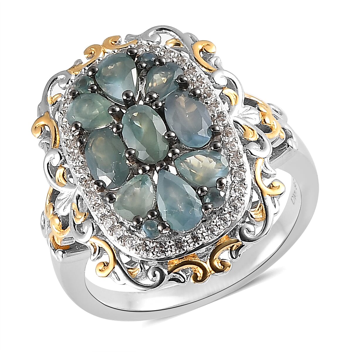 Narsipatnam Alexandrite and White Zircon Cluster Ring in Vermeil YG and Platinum Over Sterling Silver (Size 6.0) 2.25 ctw