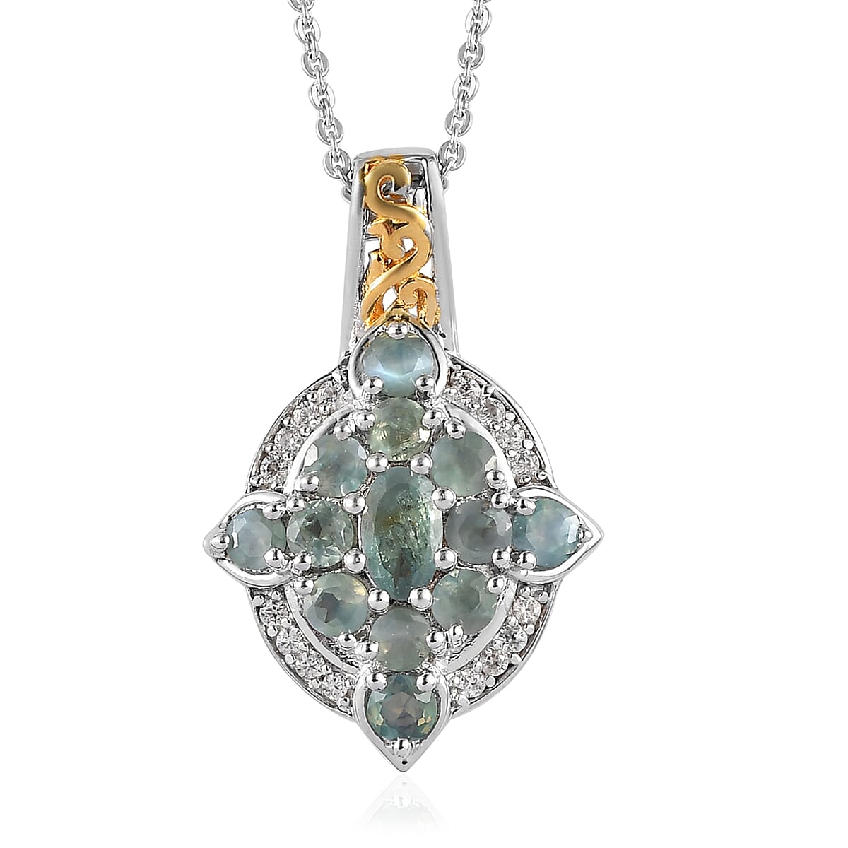 Narsipatnam Alexandrite and White Zircon Pendant Necklace 20 Inches in Vermeil YG and Platinum Over Sterling Silver 1.30 ctw