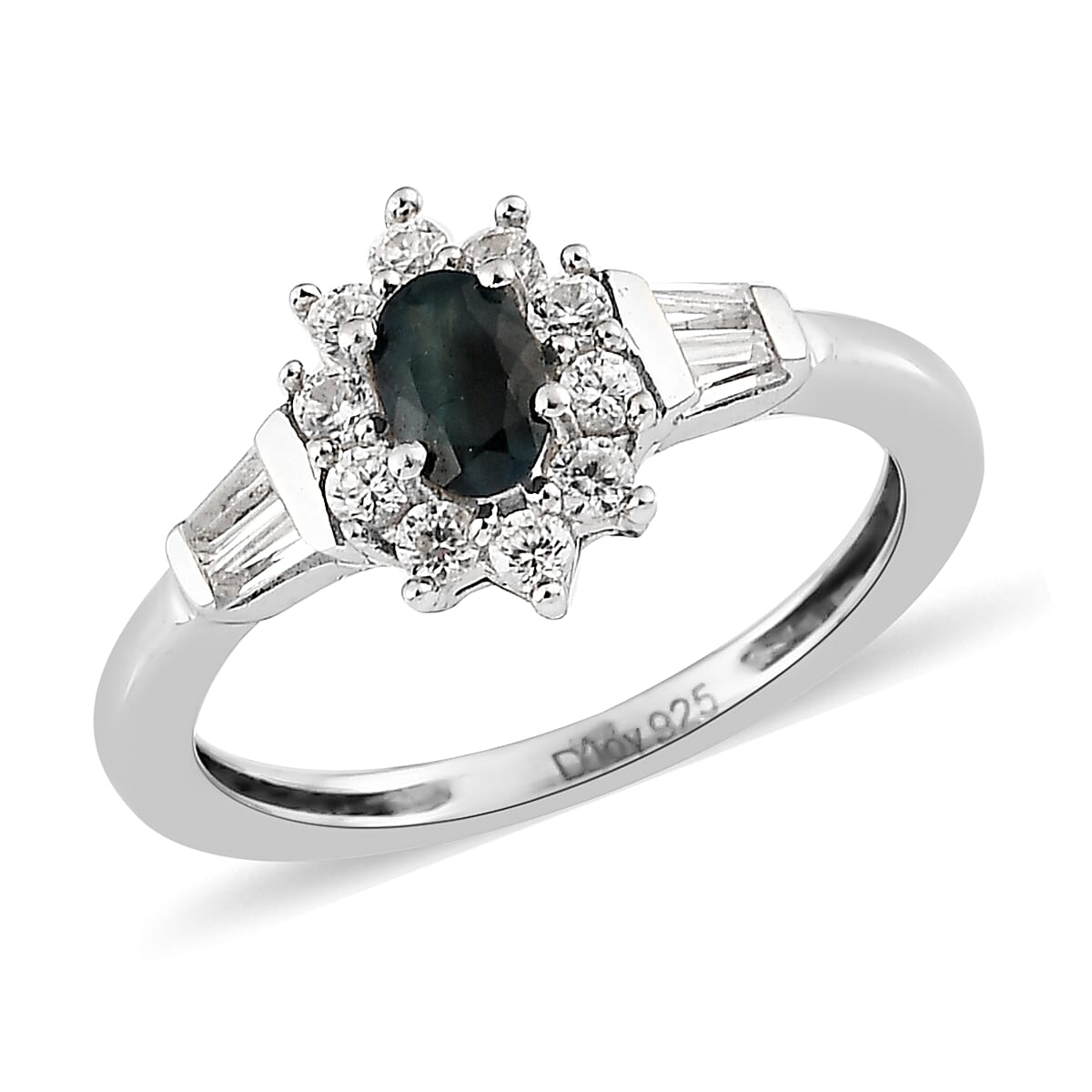 Narsipatnam Alexandrite and White Zircon Sunburst Ring in Platinum Over Sterling Silver 0.75 ctw (Del. in 5-7 Days)