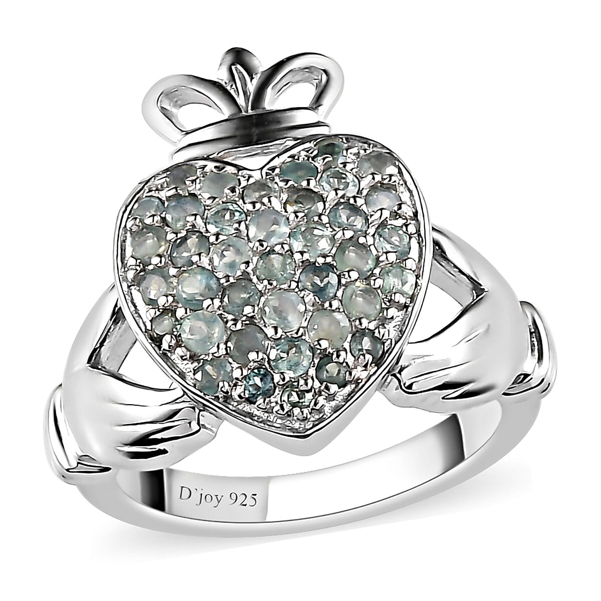 A classic jewelry piece, this alexandrite cluster ring is based on the claddagh symbol that brings alive the sentiments of art. Claddagh pattern is a traditional Irish symbol with a crown, heart and two hands which symbolize loyalty, love, and friendship respectively. The center heart motif of this claddagh cluster ring is adorned with color-coordinated alexandrite rounds set in the prong setting for an alluring look. The iconic prong setting props up the gemstone by ensuring that light strikes its surface from all directions. The pleochroic properties of this gemstone offers an alluring shift in color from pure green to refined red hues. This ring is meticulously designed in sterling silver with a luminous finish, rejuvenating the luxe hues. The artisans have ensured a smooth flow with handset gems. The smooth under gallery offers comfort and convenience with a hint of elegance. This alexandrite ring strikes a harmony of fashion and grace.