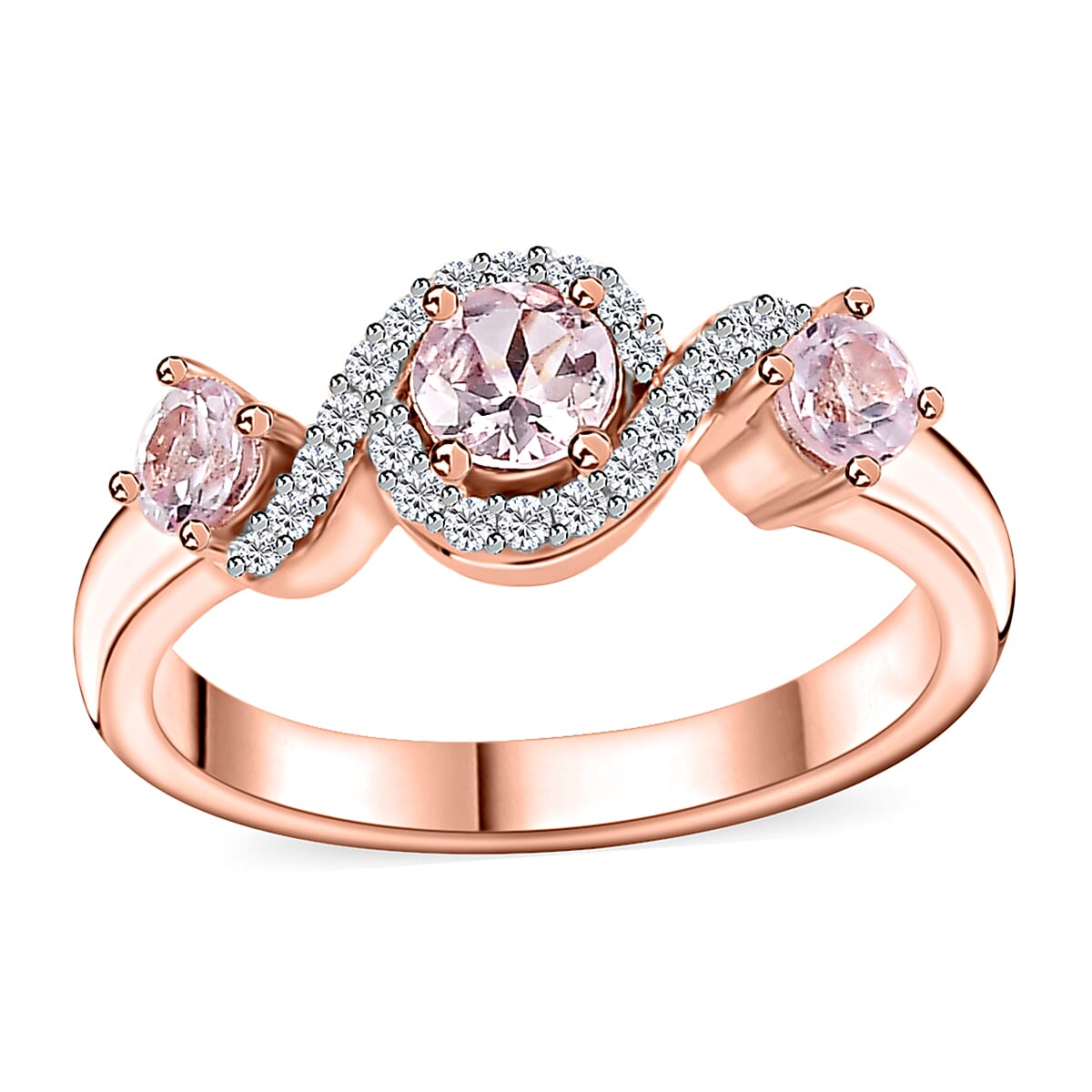 Narsipatnam Pink Spinel and White Zircon Ring in 18K Vermeil Rose Gold Over Sterling Silver (Size 9.0) 0.75 ctw