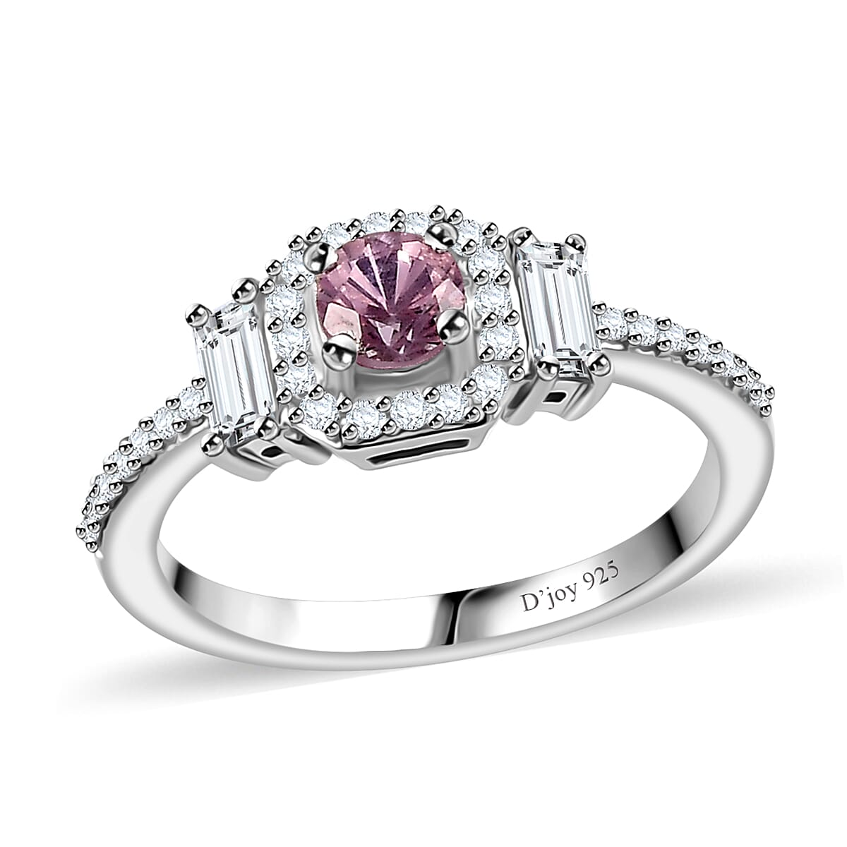 Narsipatnam Pink Spinel and White Zircon Ring in Rhodium Over Sterling Silver (Size 6.0) 0.85 ctw