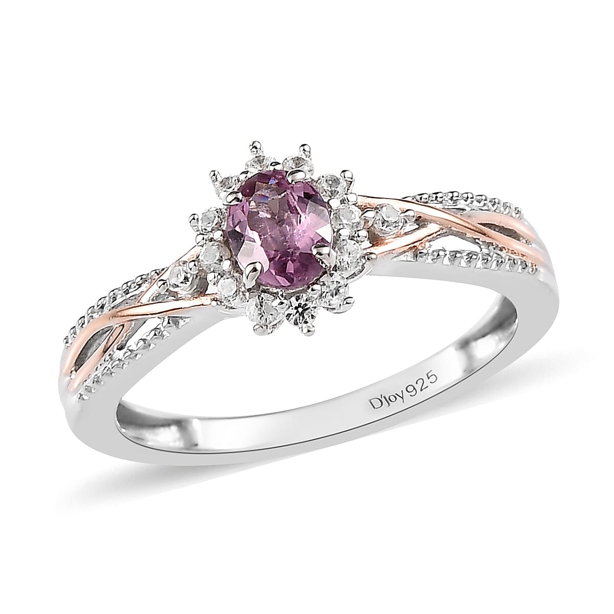 Narsipatnam Purple Spinel and White Zircon Sunburst Ring in Vermeil Rose Gold and Platinum Over Sterling Silver (Size 8.0) 0.60 ctw