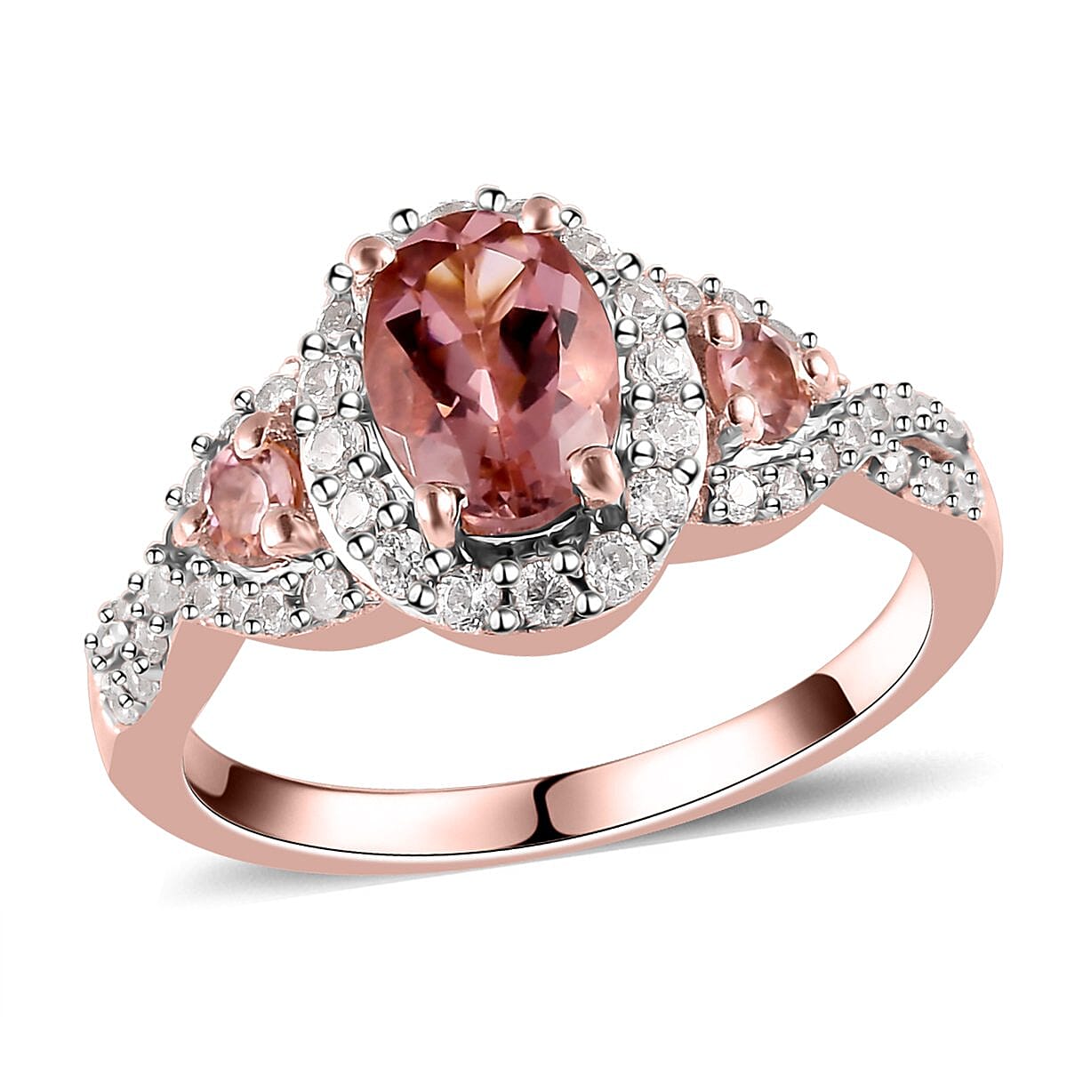 Natural Blush Tourmaline and Natural White Zircon Ring in Vermeil Rose Gold Over Sterling Silver 1.40 ctw