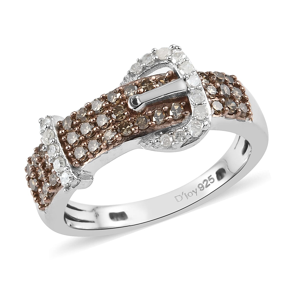 Natural Champagne & White Diamond Buckle Ring in Rhodium & Platinum Over Sterling Silver 0.50 ctw