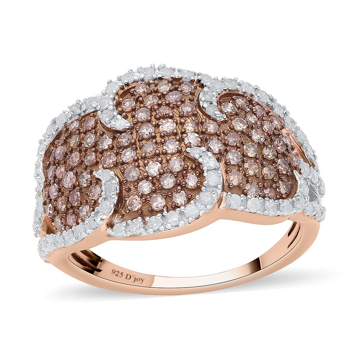 Natural Champagne and White Diamond Ring in Rhodium and Vermeil Rose Gold Over Sterling Silver (Size 7.0) 1.00 ctw