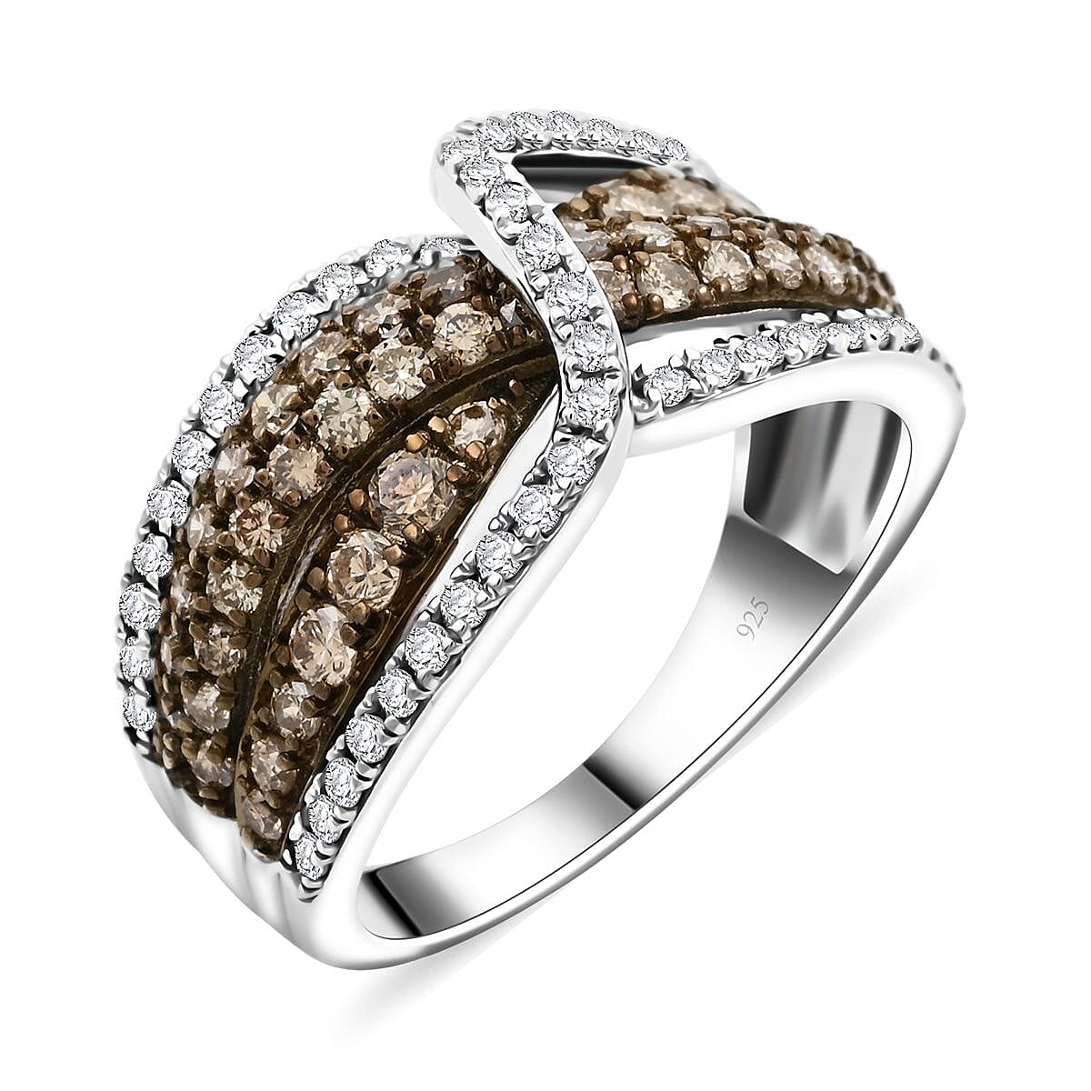 Natural Champagne and White Diamond Ring in Sterling Silver (Size 9.0) 1.25 ctw
