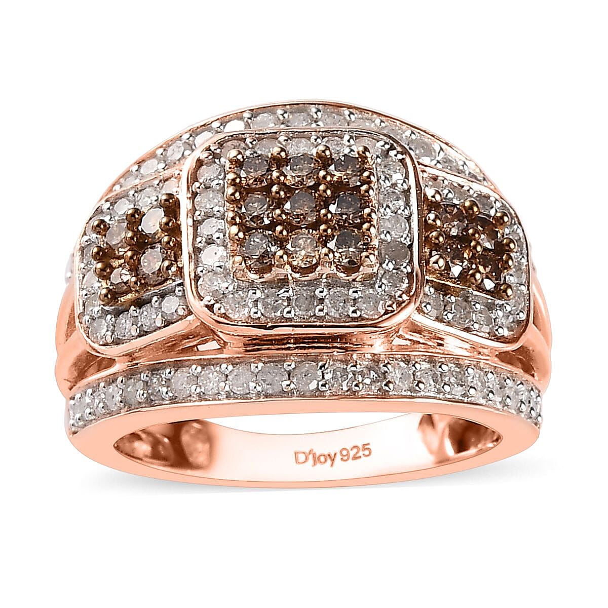 Natural Champagne and White Diamond Ring in Vermeil Rose Gold Over Sterling Silver (Size 6.0) 1.00 ctw