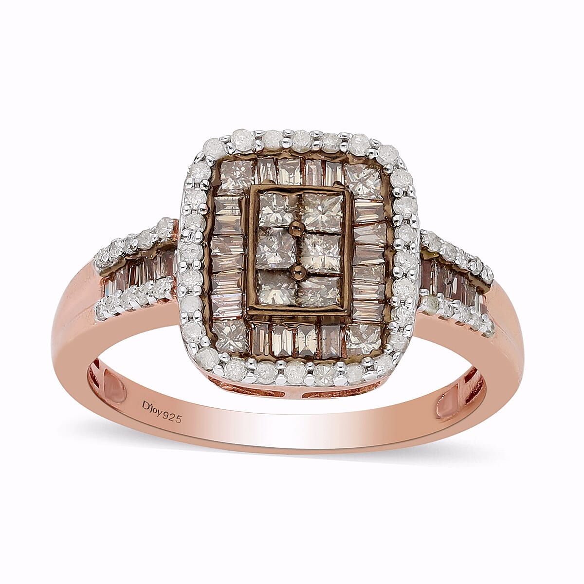 Natural Champagne and White Diamond Ring in Vermeil Rose Gold Over Sterling Silver (Size 9.0) 1.00 ctw