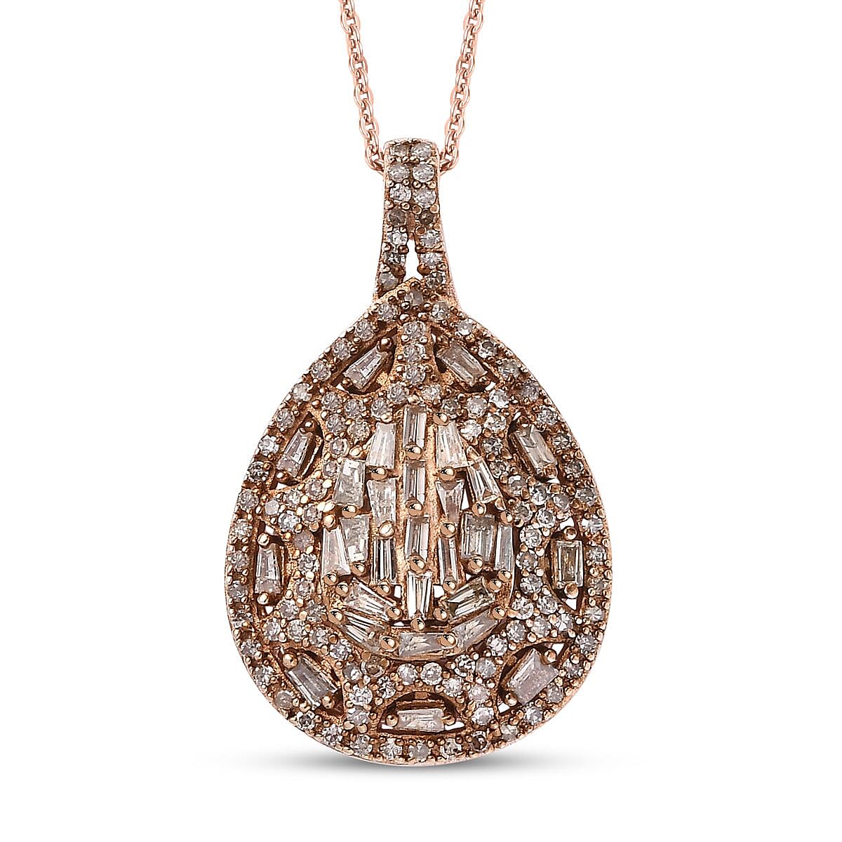 Natural Champagne Diamond 1.00 ctw Victorian Era Pendant Necklace in 18K Vermeil Rose Gold Over Sterling Silver 20 Inches