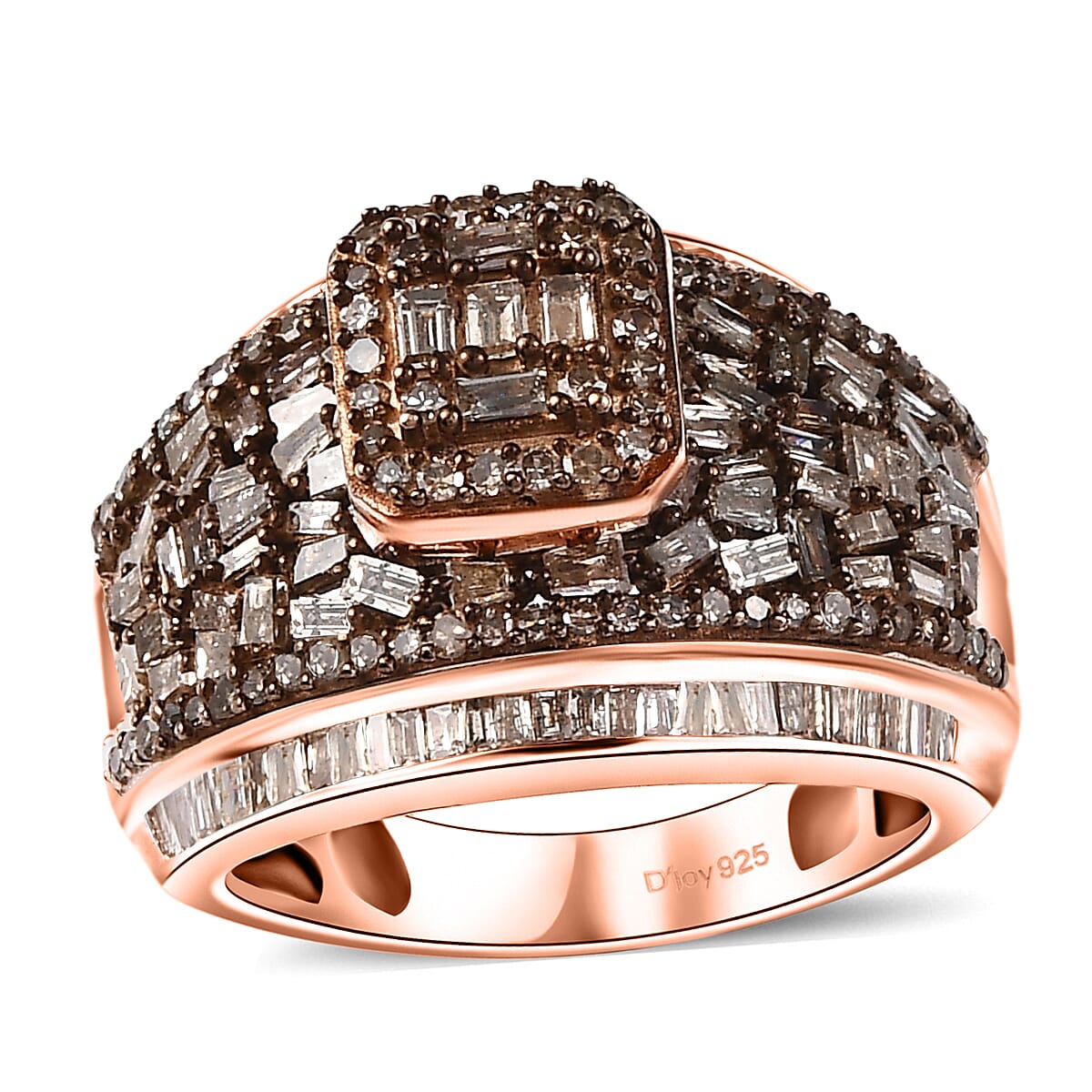 Natural Champagne Diamond 1.50 ctw Art Deco Ring in 14K Vermeil Rose Gold Over Sterling Silver (Size 6.0)